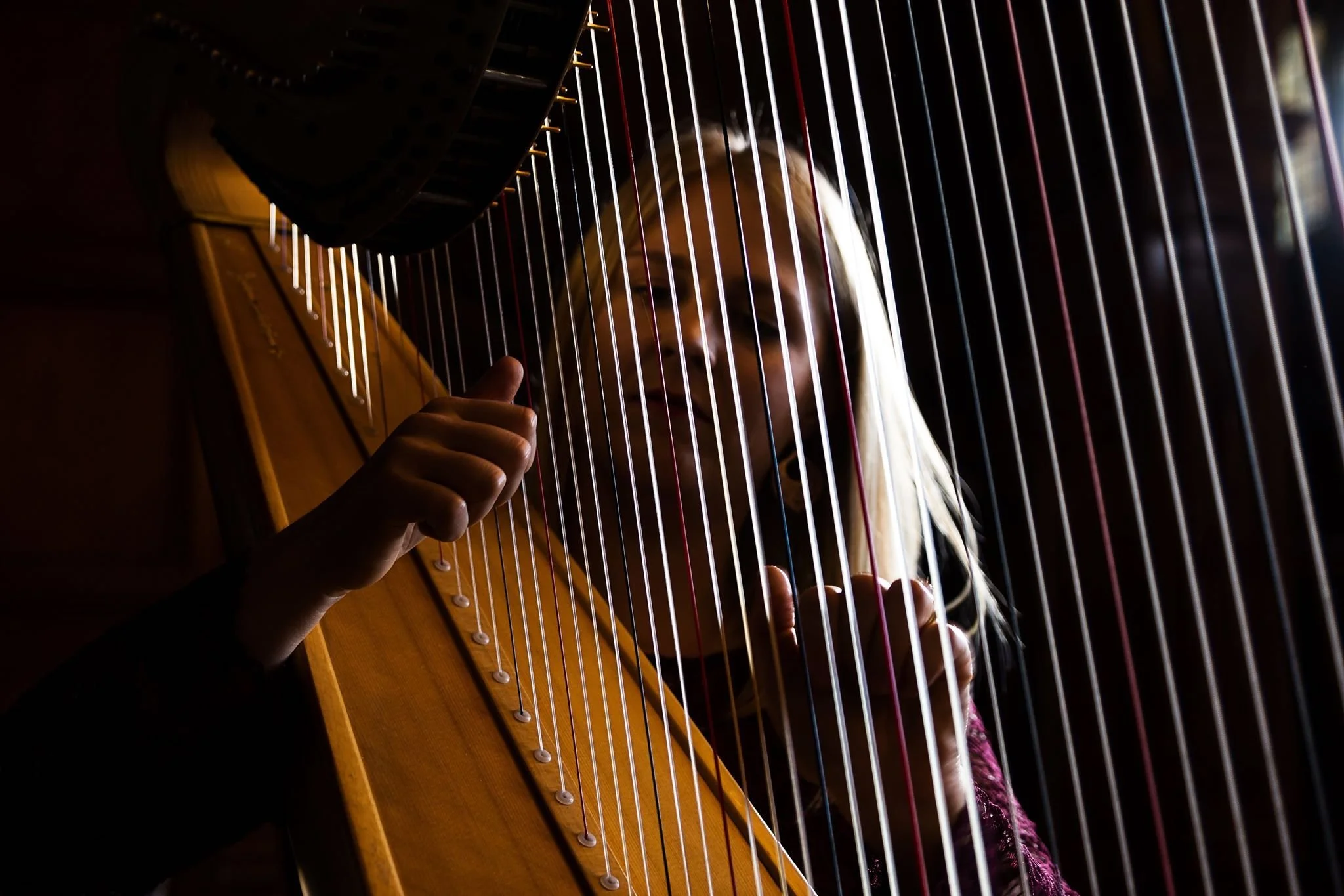 Telyn, Gwenllian i'w gweld drwy'r tannau